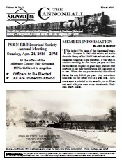 The Cannonball is the official newsletter published by the Pittsburg, Shawmut and Northern Railroad Historical Society. Your $20 annual Membership fee delivers five issues to your door throughout the year. This issue includes: